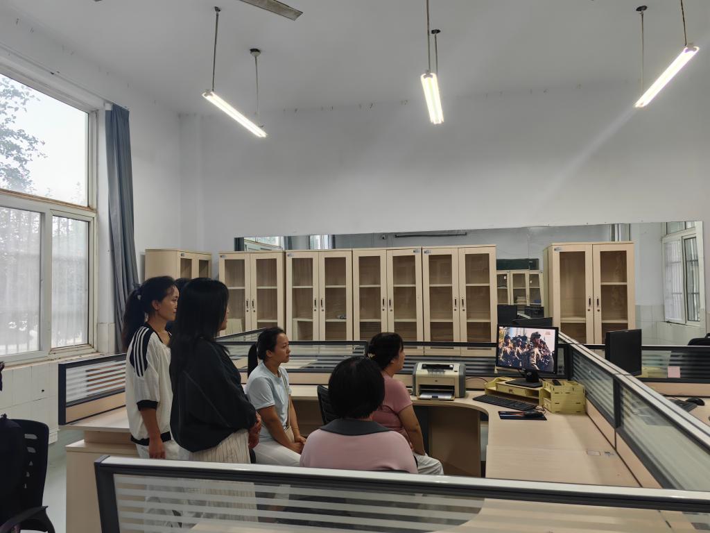 教师们聚精会神、专心致志的观看阅兵盛况:受阅部队军容严整、意气风发、威武雄壮、气势昂扬;铁甲战车整齐列阵、威风凛凛、战鹰呼啸、振翅长空。展示了钢铁长城的时代风貌,彰显了忠诚卫士的使命担当,展现了国防后备力量建设的时代风采。令人震撼、自豪和骄傲。