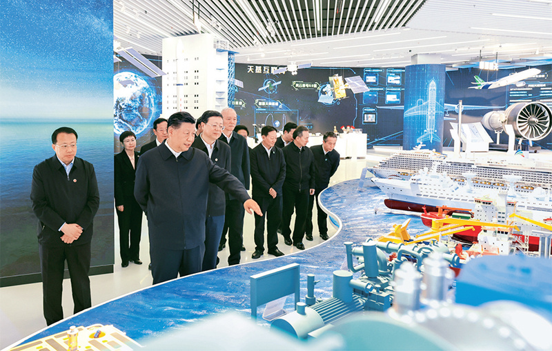 2023年11月28日至12月2日,中共中央总书记、国家主席、中央军委主席习近平在上海考察。这是11月28日下午,习近平在浦东新区张江科学城参观上海科技创新成果展。 新华社记者 王晔/摄