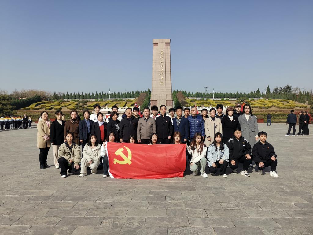 在陵园内的烈士纪念碑前,师生们整齐列队,按照既定议程先后唱中华人民共和国国歌、重温入党誓词、向烈士敬献花篮、向烈士行三鞠躬礼。仪式结束后大家参观了纪念馆,在馆内同志们认真阅读每一块展板,仔细了解每一件实物,带着崇敬的心情瞻仰烈士雕像。在义务讲解员的讲解下同志们心情沉重,深深地感受到先烈革命精神的伟大。走出纪念馆,大家沿着台阶走向雄伟的纪念碑,绕行一周瞻仰碑体浮雕,仿佛在呼唤人们追随他们的脚步,勇往直前。随后走进墓园祭扫烈士墓,大家看到墓碑上镌刻的烈士事迹,记录着他们的壮丽史诗,大多数烈士的年龄定格在二三十岁,内心一阵阵的酸楚,更加引起师生的敬仰和思念。同学们俯下身子,擦拭烈士墓碑,清理周边的杂草,把烈士们栖身之处打扫的干干净净,以告慰烈士英灵。